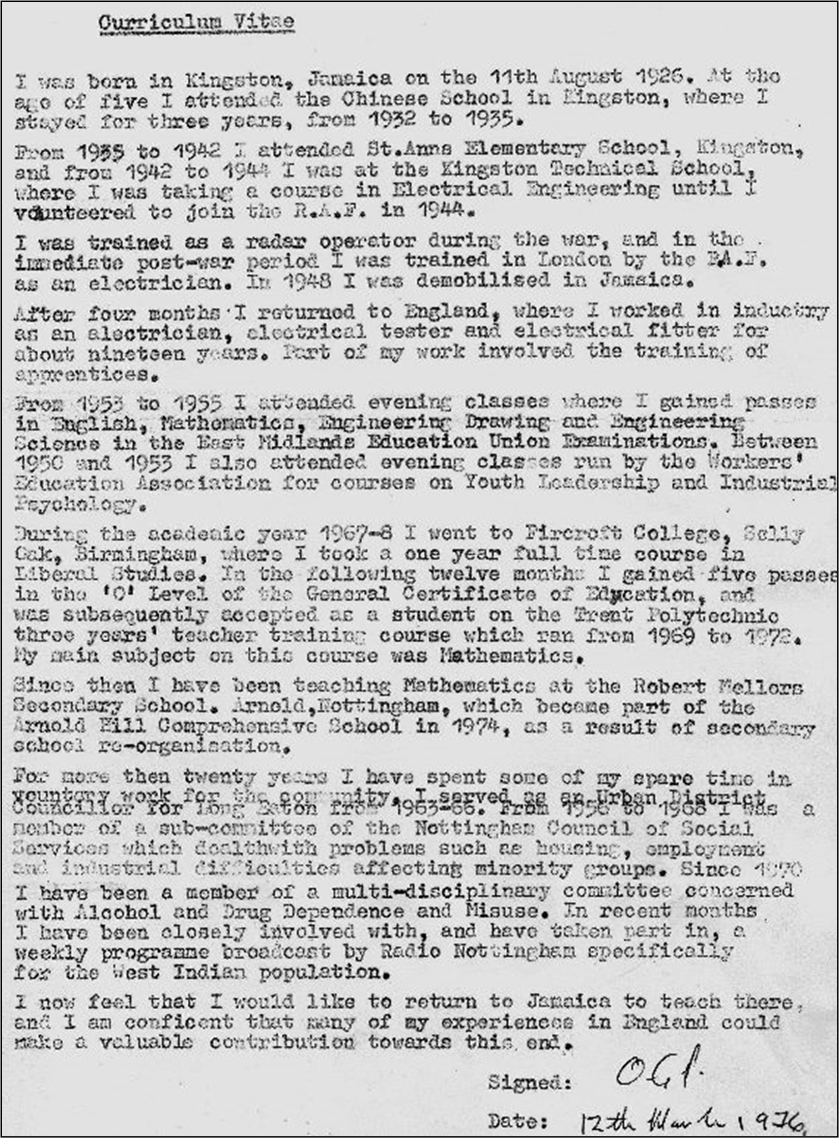He had never expressed to me the idea of returning to Jamaica, except for family visits. I can only assume that the extra workload of my new teaching post, together with the increasing demands on him as a maths teacher, as well as his community and political activity, made him contemplate a change of pace and environment.