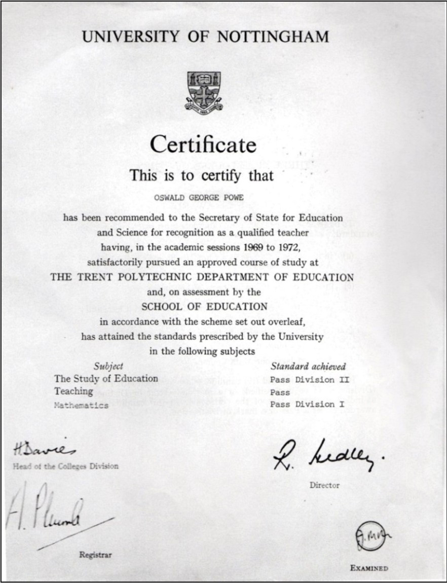 He was then offered a place at the then Nottingham Trent Polytechnic (now Nottingham Trent University), where he qualified as a mathematics teacher in 1972.