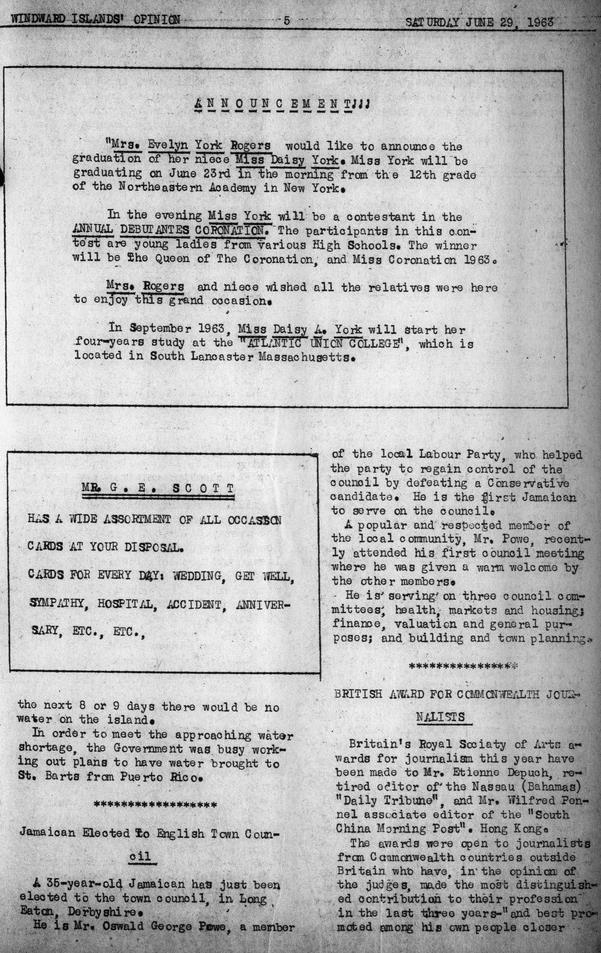 It is heartening know of these early trail-blazers, and while the findings show that George was not the first elected councillor in the UK, they do indicate that he was one of a very small number, and possibly the first in the post-Second World War period. The Ebony article below, published in 1965, mentions that as well as George “there are three other West Indians sitting as borough councillors in other towns”. If readers have any information about any other black councillors elected before 1963, they are welcome to contact us using our Visitors’ Page.